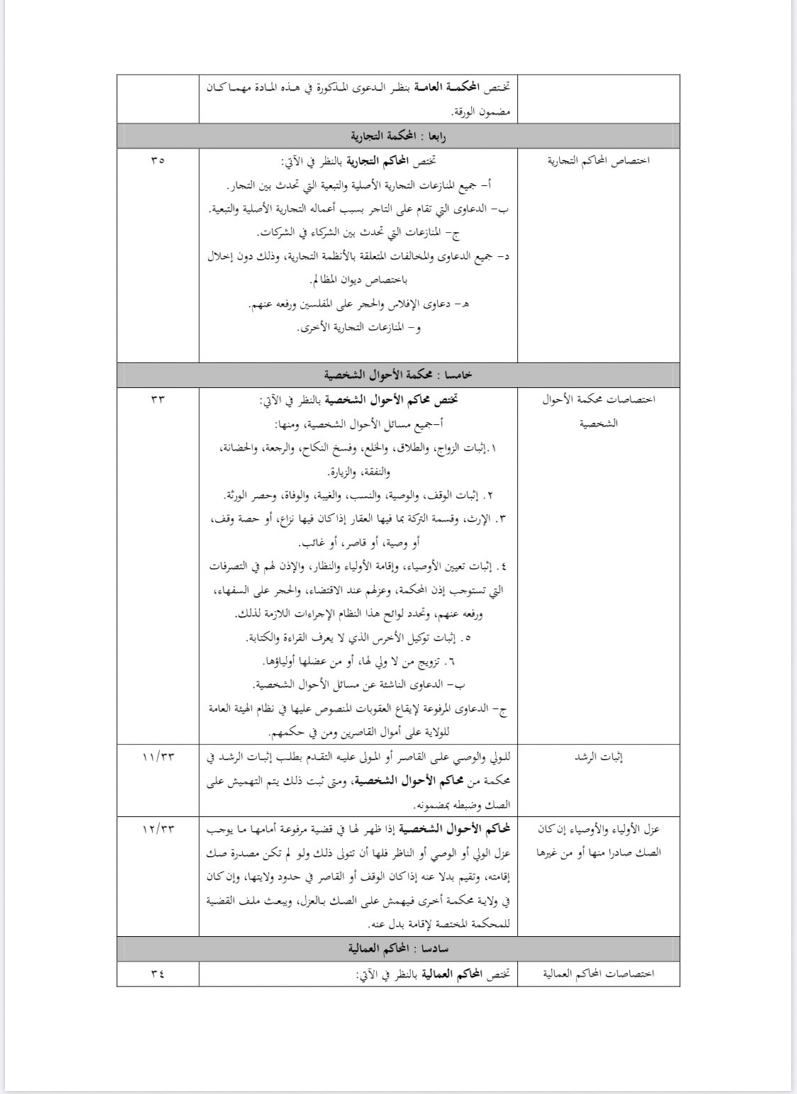 مختارات عدلية Twitterissa جدول مميز اختصاصات المحاكم في نظام المرافعات الشرعية محكمة الاستئناف المحكمة العليا المحكمة العامة المحكمة التجارية المحكمة العمالية محكمـة الأحوال