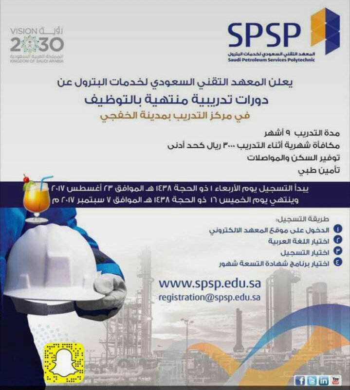 الساحات On Twitter المعهد التقني السعودي لخدمات البترول في الخفجي يعلن عن بدأ التسجيل المنتهي بالتوظيف وبمكافئة 3000 ريال وضمان الوظيفة بعد التخرج Https T Co Rkidec5qxv