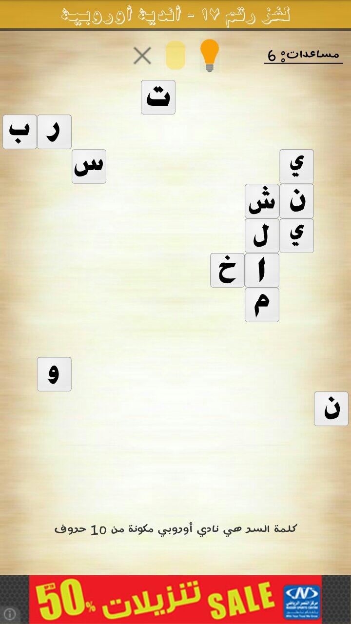 نادي اوروبي من 6 حروف كلمة السر مرحلة 70 منصة رمشة