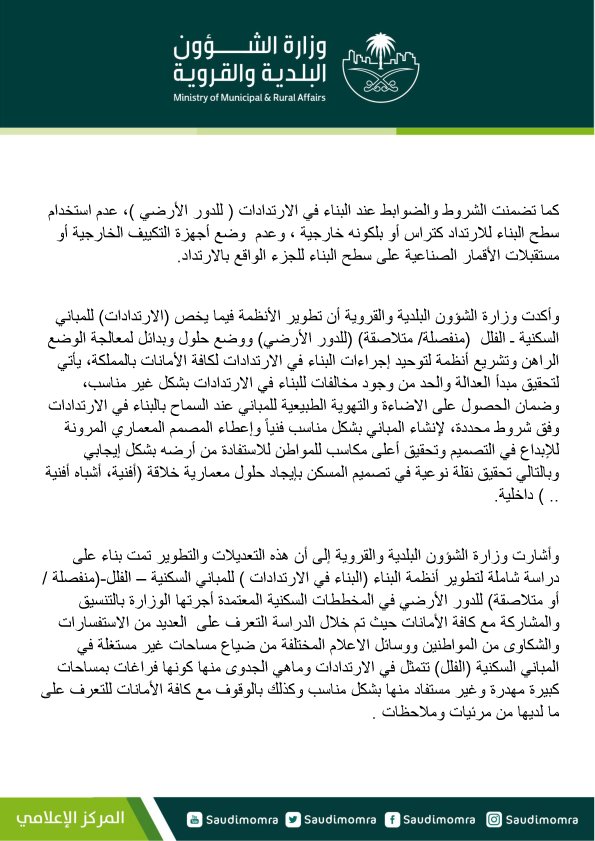 وزارة الشؤون البلدية والقروية בטוויטר انطلاقا من حرصها على تطوير أنظمة البناء واستفادة المواطنين من أراضيهم وزارة الشؤون البلدية والقروية تعلن السماح بالبناء بالارتدادات جهة المجاورين وتلاصق الملحق الخارجي بالمبنى Https T Co Mrczqeoo3m