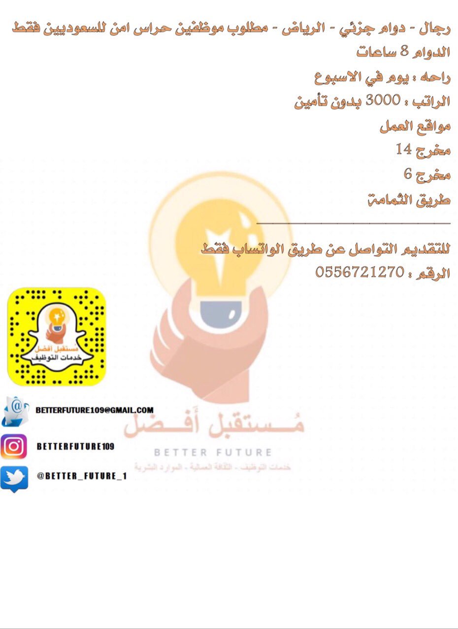 م ستقبل أ فضل Betterfuture On Twitter رجال دوام جزئي الرياض مطلوب موظفين حراس أمن بدون تامينات مستقبل أفضل وظائف الرياض