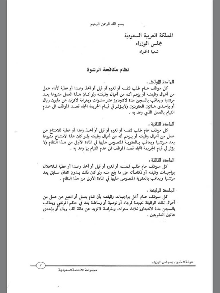نظام مكافحة الرشوة هيئة الخبراء