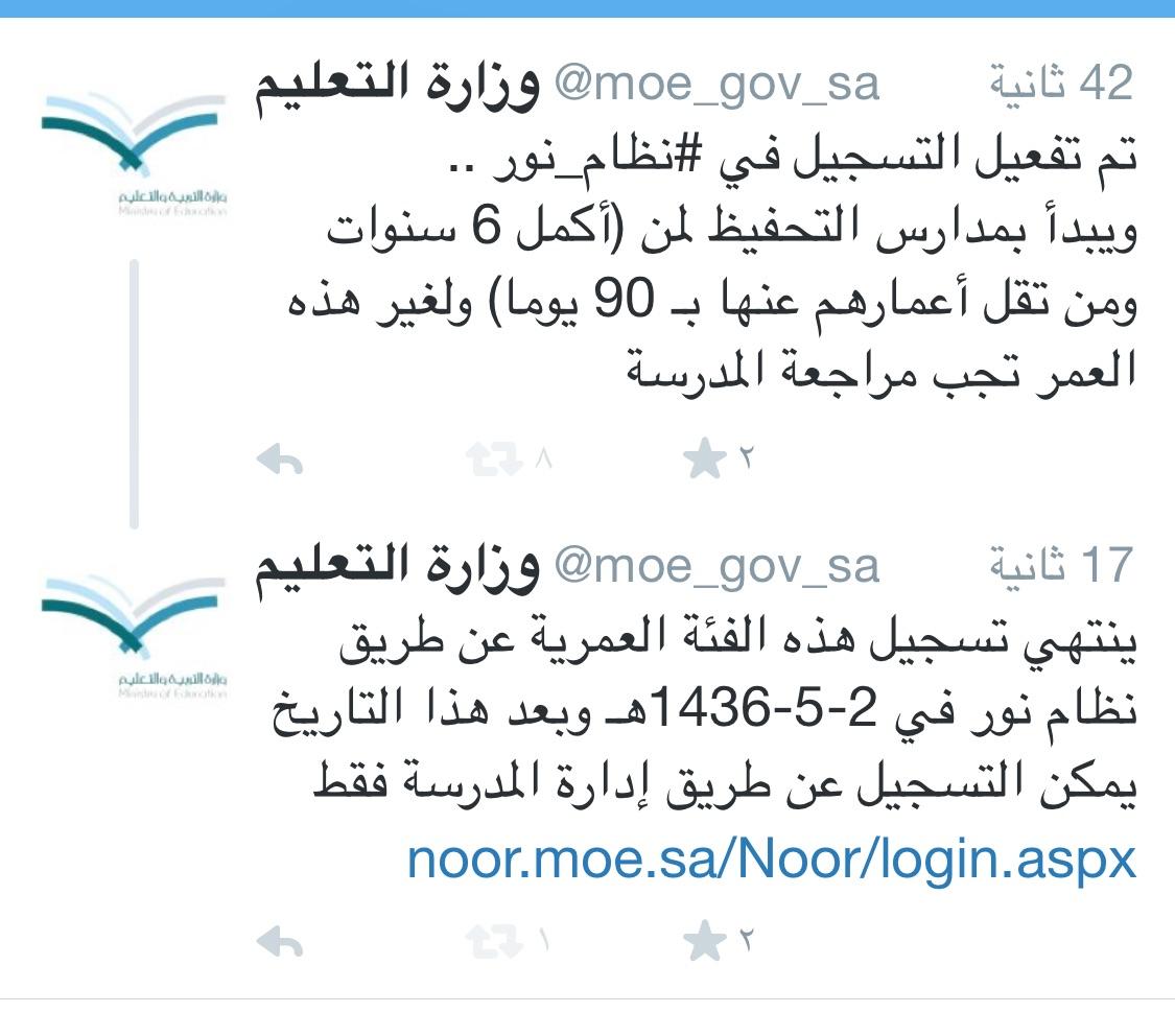 وزارة التعليم عام On Twitter جدول مواعيد تسجيل الطلاب المستجدين في الصف الأول الابتدائي من خلال نظام نور Http T Co Dwqo10wxpr